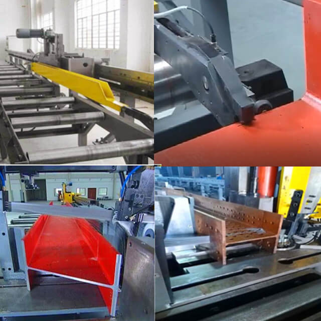 This bandsaw is used for sawing of H-shape steel, box beams, channel steel, angle steel and round steel of steel structure, bridge, three dimensional garages and petrol platform industries.